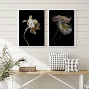 Renove sua decoração com o Kit 2 Quadros Flores Tons Bege Fundo Preto 24X18Cm. Perfeito para quarto, sala, cozinha, escritório, área gourmet e muito mais. Chega de paredes vazias!