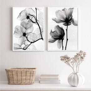 Kit 2 Quadros Flores Transparentes 24x18cm - Preta