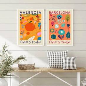 Kit 2 quadros flower market - valência e barcelona 45x34cm Moldura: madeira preta Informações do produto tire todas as suas dúvidas no descritivo abaixo: decoração para quarto, sala, cozinha, escritório, área gourmet e muito mais. Chega de paredes vazias. Medidas - cada peça tem 45x34cm a3 . Material do papel - papel fotográfico brilhante de altíssima resolução acabamento - todos os quadros são acompanhados de uma película de acetato para proteção da imagem. - os quadros são embalados de forma segura com plástico bolha com camada dupla de acordo com o tamanho dos quadros. Garantia - garantia de 3 meses. Meu quadro chegou. Como posso fixá-lo Você precisa apenas de um martelo e um prego, pois os quadros já vão acompanhados de penduradores. Esta é a forma mais indicada. Caso prefira, você pode utilizar uma fita dupla face neste caso, sugerimos de alta qualidade para evitar que descole e seu quadro caia . Como posso limpar meu quadro A limpeza é feita como um móvel comum da sua casa. Apenas um pano seco ou espanador são suficientes para tal