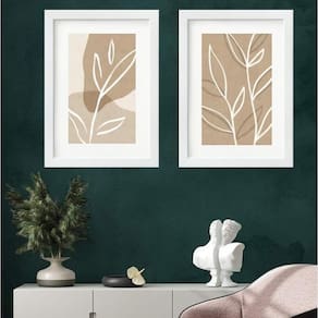 Kit 2 quadros folhas abstratas bege - 60x48cm Moldura: madeira branca Informações do produto tire todas as suas dúvidas no descritivo abaixo: decoração para quarto, sala, cozinha, escritório, área gourmet e muito mais. Chega de paredes vazias medidas - cada peça tem 60x48cm . Material do papel - papel fotográfico brilhante de altíssima resolução acabamento - todos os quadros são acompanhados de vidro para proteção da imagem. - moldura em madeira maciça na cor preta ou branca conforme produto escolhido e pendurador. - paspatur branco com 7cm de largura - os quadros são embalados de forma segura com plástico bolha com camada dupla de acordo com o tamanho dos quadros. - de 3 meses. Meu quadro chegou. Como posso fixá-lo Você precisa apenas de um martelo e um prego, pois os quadros já vão acompanhados de penduradores. Esta é a forma mais indicada. Como posso limpar meu quadro A limpeza é feita como um móvel comum da sua casa. Apenas um pano seco ou espanador são suficientes para tal