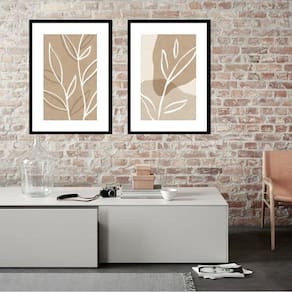 Kit 2 Quadros Folhas Abstratas Bege - 60X48Cm