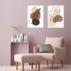 Kit 2 quadros folhas abstratas - marrom rosê 45x34cm - com vidro Moldura: madeira preta Informações do produto tire todas as suas dúvidas no descritivo abaixo: decoração para quarto, sala, cozinha, escritório, área gourmet e muito mais. Chega de paredes vazias medidas - cada peça tem 45x34cm a3 . Material do papel - papel fotográfico brilhante de altíssima resolução acabamento - todos os quadros são acompanhados de vidro para proteção da imagem. - moldura em madeira maciça na cor preta ou branca conforme produto escolhido e pendurador . - os quadros são embalados de forma segura com plástico bolha com camada dupla de acordo com o tamanho dos quadros. Garantia - garantia de 3 meses. Meu quadro chegou. Como posso fixá-lo Você precisa apenas de um martelo e um prego, pois os quadros já vão acompanhados de penduradores. Esta é a forma mais indicada. Como posso limpar meu quadro A limpeza é feita como um móvel comum da sua casa. Apenas um pano seco ou espanador são suficientes para tal