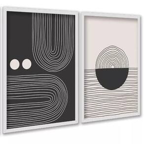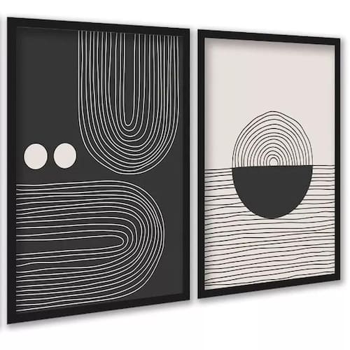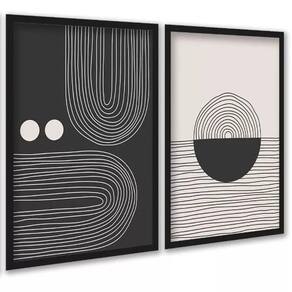 Kit 2 Quadros Formas Abstratos Linhas Preto E Bege 45X34Cm