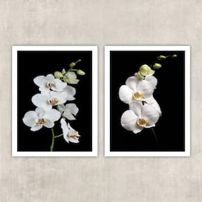 Kit 2 quadros fotografia orquídeas brancas 33x24cm - com vidro Moldura: madeira preta Informações do produto tire todas as suas dúvidas no descritivo abaixo: decoração para quarto, sala, cozinha, escritório, área gourmet e muito mais. Chega de paredes vazias medidas - cada peça tem 33x24cm a4 . Material do papel - papel fotográfico brilhante de altíssima resolução acabamento - todos os quadros são acompanhados de vidro para proteção da imagem. - moldura em madeira maciça na cor preta e pendurador . - os quadros são embalados de forma segura com plástico bolha com camada dupla de acordo com o tamanho dos quadros. Garantia - garantia de 3 meses. Meu quadro chegou. Como posso fixá-lo Você precisa apenas de um martelo e um prego, pois os quadros já vão acompanhados de penduradores. Esta é a forma mais indicada. Como posso limpar meu quadro A limpeza é feita como um móvel comum da sua casa. Apenas um pano seco ou espanador são suficientes para tal