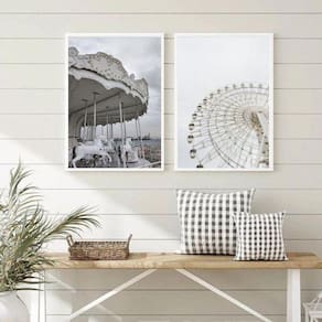 Kit 2 quadros fotografias brancas carrossel e roda gigante 24x18cm Moldura: madeira preta Informações do produto tire todas as suas dúvidas no descritivo abaixo: decoração para quarto, sala, cozinha, escritório, área gourmet e muito mais. Chega de paredes vazias medidas - cada peça tem 24x18cm a5 . Material do papel - papel fotográfico brilhante de altíssima resolução acabamento - todos os quadros são acompanhados de uma película de acetato para proteção da imagem. - os quadros são embalados de forma segura com plástico bolha com camada dupla de acordo com o tamanho dos quadros. Garantia - garantia de 3 meses. Meu quadro chegou. Como posso fixá-lo Você precisa apenas de um martelo e um prego, pois os quadros já vão acompanhados de penduradores. Esta é a forma mais indicada. Caso prefira, você pode utilizar uma fita dupla face neste caso, sugerimos de alta qualidade para evitar que descole e seu quadro caia . Como posso limpar meu quadro A limpeza é feita como um móvel comum da sua casa. Apenas um pano seco ou espanador são suficientes para tal Ean: 7891057193493