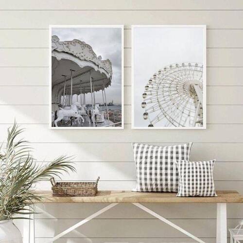 Kit 2 quadros fotografias brancas carrossel e roda gigante 24x18cm - com vidro Moldura: madeira preta Informações do produto tire todas as suas dúvidas no descritivo abaixo: decoração para quarto, sala, cozinha, escritório, área gourmet e muito mais. Chega de paredes vazias medidas - cada peça tem 24x18cm a5 . Material do papel - papel fotográfico brilhante de altíssima resolução acabamento - todos os quadros são acompanhados de vidro para proteção da imagem. - moldura em madeira maciça na cor preta ou branca conforme produto escolhido e pendurador . - os quadros são embalados de forma segura com plástico bolha com camada dupla de acordo com o tamanho dos quadros. Garantia - garantia de 3 meses. Meu quadro chegou. Como posso fixá-lo Você precisa apenas de um martelo e um prego, pois os quadros já vão acompanhados de penduradores. Esta é a forma mais indicada. Como posso limpar meu quadro A limpeza é feita como um móvel comum da sua casa. Apenas um pano seco ou espanador são suficientes para tal Ean: 7892135191592