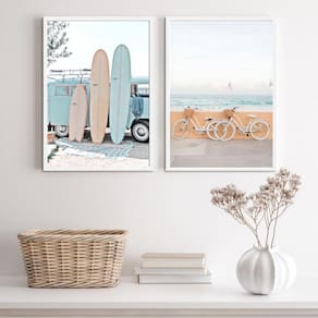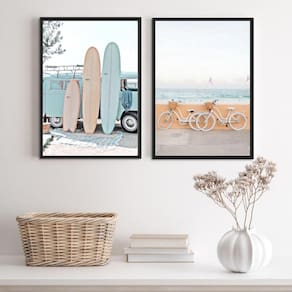 O Kit 2 Quadros Fotografias Praia Kombi E Bicicleta 33X24Cm é perfeito para você que deseja decorar seu quarto, sala, cozinha, escritório, área gourmet e muitos outros ambientes. Chega de paredes vazias! Cada peça possui as medidas de 33x24cm A4 e é fabricada com material de alta qualidade.