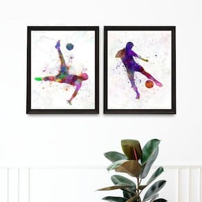 Kit 2 Quadros Futebol - Aquarela 24X18Cm - Com Vidro