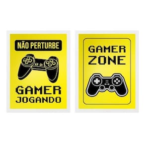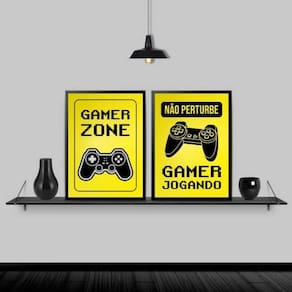 Kit 2 quadros gamer zone amarelo 24x18cm Moldura: madeira branca Informações do produto tire todas as suas dúvidas no descritivo abaixo: decoração para quarto, sala, cozinha, escritório, área gourmet e muito mais. Chega de paredes vazias medidas - cada peça tem 24x18cm a5 . Material do papel - papel fotográfico brilhante de altíssima resolução acabamento - todos os quadros são acompanhados de uma película de acetato para proteção da imagem. - os quadros são embalados de forma segura com plástico bolha com camada dupla de acordo com o tamanho dos quadros. - de 3 meses. Meu quadro chegou. Como posso fixá-lo Você precisa apenas de um martelo e um prego, pois os quadros já vão acompanhados de penduradores. Esta é a forma mais indicada. Caso prefira, você pode utilizar uma fita dupla face neste caso, sugerimos de alta qualidade para evitar que descole e seu quadro caia . Como posso limpar meu quadro A limpeza é feita como um móvel comum da sua casa. Apenas um pano seco ou espanador são suficientes para tal