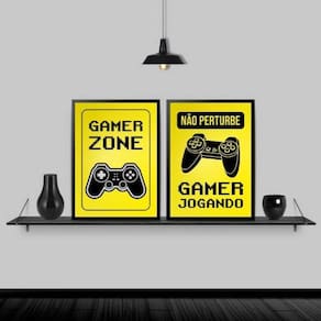 Kit 2 Quadros Gamer Zone Amarelo 33X24Cm - Com Vidro