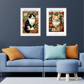 Kit 2 quadros gatos com flores - william morris 24x18cm Cor: moldura preta Informações do produto tire todas as suas dúvidas no descritivo abaixo: decoração para quarto, sala, cozinha, escritório, área gourmet e muito mais. Chega de paredes vazias medidas - cada peça tem 24x18cm a5 . Material do papel - papel fotográfico brilhante de altíssima resolução acabamento - todos os quadros são acompanhados de uma película de acetato para proteção da imagem. - os quadros são embalados de forma segura com plástico bolha com camada dupla de acordo com o tamanho dos quadros. Garantia - garantia de 3 meses. Meu quadro chegou. Como posso fixá-lo Você precisa apenas de um martelo e um prego, pois os quadros já vão acompanhados de penduradores. Esta é a forma mais indicada. Caso prefira, você pode utilizar uma fita dupla face neste caso, sugerimos de alta qualidade para evitar que descole e seu quadro caia . Como posso limpar meu quadro A limpeza é feita como um móvel comum da sua casa. Apenas um pano seco ou espanador são suficientes para tal Ean: 7895192955565