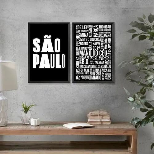 Kit 2 quadros gírias de 45x34cm Cor: moldura branca Informações do produto tire todas as suas dúvidas no descritivo abaixo: decoração para quarto, sala, cozinha, escritório, área gourmet e muito mais. Chega de paredes vazias. Medidas - cada peça tem 45x34cm a3 . Material do papel - papel fotográfico brilhante de altíssima resolução acabamento - todos os quadros são acompanhados de uma película de acetato para proteção da imagem. - os quadros são embalados de forma segura com plástico bolha com camada dupla de acordo com o tamanho dos quadros. - de 3 meses. Meu quadro chegou. Como posso fixá-lo Você precisa apenas de um martelo e um prego, pois os quadros já vão acompanhados de penduradores. Esta é a forma mais indicada. Caso prefira, você pode utilizar uma fita dupla face neste caso, sugerimos de alta qualidade para evitar que descole e seu quadro caia . Como posso limpar meu quadro A limpeza é feita como um móvel comum da sua casa. Apenas um pano seco ou espanador são suficientes para tal Marca: Não Informado Ean: 7891234586322
