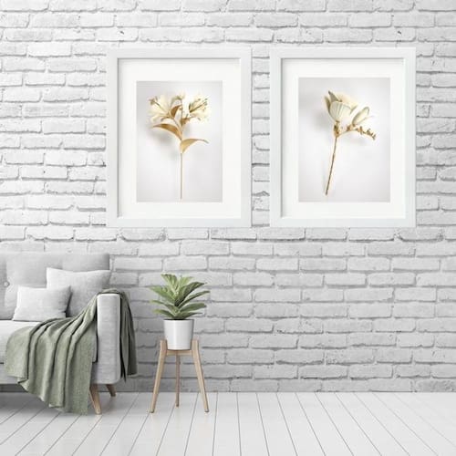 Kit 2 quadros grandes flores branca dourado - 60x48cm Moldura: madeira preta Informações do produto tire todas as suas dúvidas no descritivo abaixo: decoração para quarto, sala, cozinha, escritório, área gourmet e muito mais. Chega de paredes vazias medidas - cada peça tem 60x48cm . Material do papel - papel fotográfico brilhante de altíssima resolução acabamento - todos os quadros são acompanhados de vidro para proteção da imagem. - moldura em madeira maciça na cor preta ou branca conforme produto escolhido e pendurador. - paspatur branco com 7cm de largura - os quadros são embalados de forma segura com plástico bolha com camada dupla de acordo com o tamanho dos quadros. Garantia - garantia de 3 meses. Meu quadro chegou. Como posso fixá-lo Você precisa apenas de um martelo e um prego, pois os quadros já vão acompanhados de penduradores. Esta é a forma mais indicada. Como posso limpar meu quadro A limpeza é feita como um móvel comum da sua casa. Apenas um pano seco ou espanador são suficientes para tal Ean: 7894334690241