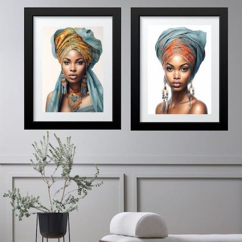 Kit 2 quadros grandes mulher raça negra - 60x48cm Moldura: madeira branca Informações do produto tire todas as suas dúvidas no descritivo abaixo: decoração para quarto, sala, cozinha, escritório, área gourmet e muito mais. Chega de paredes vazias medidas - cada peça tem 60x48cm . Material do papel - papel fotográfico brilhante de altíssima resolução acabamento - todos os quadros são acompanhados de vidro para proteção da imagem. - moldura em madeira maciça na cor preta ou branca conforme produto escolhido e pendurador. - paspatur branco com 7cm de largura - os quadros são embalados de forma segura com plástico bolha com camada dupla de acordo com o tamanho dos quadros. Garantia - garantia de 3 meses. Meu quadro chegou. Como posso fixá-lo Você precisa apenas de um martelo e um prego, pois os quadros já vão acompanhados de penduradores. Esta é a forma mais indicada. Como posso limpar meu quadro A limpeza é feita como um móvel comum da sua casa. Apenas um pano seco ou espanador são suficientes para tal Ean: 7892656346471