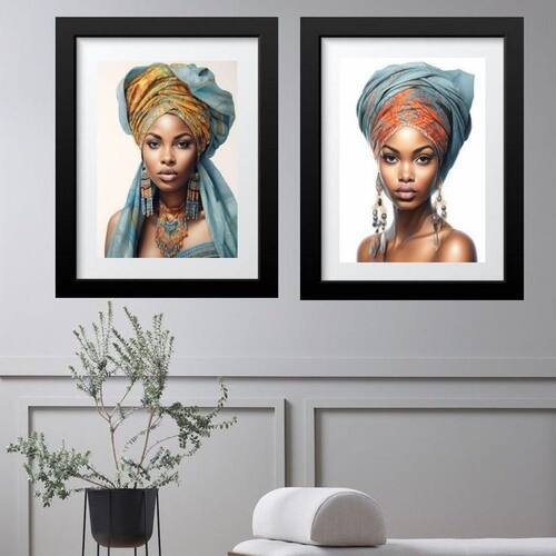 Kit 2 Quadros Grandes Mulher Raça Negra - 60X48Cm