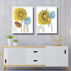 Kit 2 quadros gravuras girassóis boho 33x24cm - com vidro Cor: moldura preta Informações do produto tire todas as suas dúvidas no descritivo abaixo: decoração para quarto, sala, cozinha, escritório, área gourmet e muito mais. Chega de paredes vazias medidas - cada peça tem 33x24cm a4 . Material do papel - papel fotográfico brilhante de altíssima resolução acabamento - todos os quadros são acompanhados de vidro para proteção da imagem. - moldura em madeira maciça na cor preta ou branca conforme produto escolhido e pendurador . - os quadros são embalados de forma segura com plástico bolha com camada dupla de acordo com o tamanho dos quadros. Garantia - garantia de 3 meses. Meu quadro chegou. Como posso fixá-lo Você precisa apenas de um martelo e um prego, pois os quadros já vão acompanhados de penduradores. Esta é a forma mais indicada. Como posso limpar meu quadro A limpeza é feita como um móvel comum da sua casa. Apenas um pano seco ou espanador são suficientes para tal