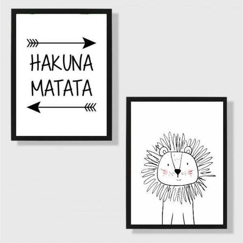 Kit 2 quadros hakuna matata leãozinho 24x18cm Moldura: madeira preta Informações do produto tire todas as suas dúvidas no descritivo abaixo: decoração para quarto, sala, cozinha, escritório, área gourmet e muito mais. Chega de paredes vazias medidas - cada peça tem 24x18cm a5 . Material do papel - papel fotográfico brilhante de altíssima resolução acabamento - todos os quadros são acompanhados de uma película de acetato para proteção da imagem. - moldura em madeira maciça na cor preta e pendurador móvel que pode ser retirado facilmente caso deseje fixar com fita dupla face. - os quadros são embalados de forma segura com plástico bolha com camada dupla de acordo com o tamanho dos quadros. Marca: Não Informado