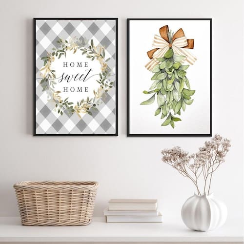 Kit 2 quadros home sweet home - plantinha 24x18cm - com vidro Moldura: madeira branca Informações do produto tire todas as suas dúvidas no descritivo abaixo: decoração para quarto, sala, cozinha, escritório, área gourmet e muito mais. Chega de paredes vazias medidas - cada peça tem 24x18cm a5 . Material do papel - papel fotográfico brilhante de altíssima resolução acabamento - todos os quadros são acompanhados de vidro para proteção da imagem. - moldura em madeira maciça na cor preta ou branca conforme produto escolhido e pendurador . - os quadros são embalados de forma segura com plástico bolha com camada dupla de acordo com o tamanho dos quadros. Garantia - garantia de 3 meses. Meu quadro chegou. Como posso fixá-lo Você precisa apenas de um martelo e um prego, pois os quadros já vão acompanhados de penduradores. Esta é a forma mais indicada. Como posso limpar meu quadro A limpeza é feita como um móvel comum da sua casa. Apenas um pano seco ou espanador são suficientes para tal