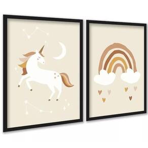 Kit 2 quadros infantis unicórnio arco-íris bege 45x34cm Cor: moldura preta Informações do produto tire todas as suas dúvidas no descritivo abaixo: decoração para quarto, sala, cozinha, escritório, área gourmet e muito mais. Chega de paredes vazias. Medidas - cada peça tem 45x34cm a3 . Material do papel - papel fotográfico brilhante de altíssima resolução acabamento - todos os quadros são acompanhados de uma película de acetato para proteção da imagem. - os quadros são embalados de forma segura com plástico bolha com camada dupla de acordo com o tamanho dos quadros. - de 3 meses. Meu quadro chegou. Como posso fixá-lo Você precisa apenas de um martelo e um prego, pois os quadros já vão acompanhados de penduradores. Esta é a forma mais indicada. Caso prefira, você pode utilizar uma fita dupla face neste caso, sugerimos de alta qualidade para evitar que descole e seu quadro caia . Como posso limpar meu quadro A limpeza é feita como um móvel comum da sua casa. Apenas um pano seco ou espanador são suficientes para tal