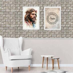 Kit 2 Quadros Jesus Aquarela - Pai Nosso 45X34Cm