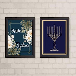 Este Kit 2 Quadros Judaicos Shabbat Shalom Menorah é perfeito para decorar qualquer ambiente da sua casa. Com moldura de madeira preta e medidas de 33x24cm A4 , esses quadros trazem um toque especial para o quarto, sala, cozinha, escritório, área gourmet e muito mais.