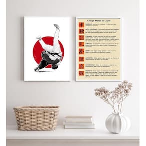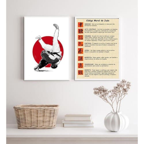 O Kit 2 Quadros Código Moral Do Judô 24X18Cm é perfeito para quem busca uma decoração diferenciada e cheia de personalidade para o quarto, sala, cozinha, escritório, área gourmet e muito mais. Com medidas de 24x18cm A5 , cada peça é produzida em papel fotográfico brilhante de altíssima resolução, garantindo uma imagem nítida e de qualidade.