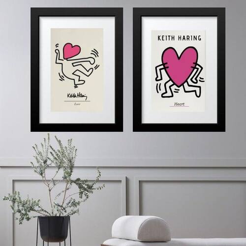 Kit 2 quadros keith haring coração - 60x48cm Moldura: madeira branca Informações do produto tire todas as suas dúvidas no descritivo abaixo: decoração para quarto, sala, cozinha, escritório, área gourmet e muito mais. Chega de paredes vazias medidas - cada peça tem 60x48cm . Material do papel - papel fotográfico brilhante de altíssima resolução acabamento - todos os quadros são acompanhados de vidro para proteção da imagem. - moldura em madeira maciça na cor preta ou branca conforme produto escolhido e pendurador. - paspatur branco com 7cm de largura - os quadros são embalados de forma segura com plástico bolha com camada dupla de acordo com o tamanho dos quadros. Garantia - garantia de 3 meses. Meu quadro chegou. Como posso fixá-lo Você precisa apenas de um martelo e um prego, pois os quadros já vão acompanhados de penduradores. Esta é a forma mais indicada. Como posso limpar meu quadro A limpeza é feita como um móvel comum da sua casa. Apenas um pano seco ou espanador são suficientes para tal
