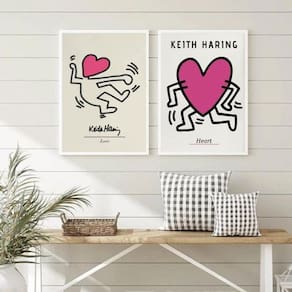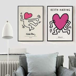 Kit 2 quadros keith haring heart love 45x34cm Moldura: madeira branca Informações do produto tire todas as suas dúvidas no descritivo abaixo: decoração para quarto, sala, cozinha, escritório, área gourmet e muito mais. Chega de paredes vazias. Medidas - cada peça tem 45x34cm a3 . Material do papel - papel fotográfico brilhante de altíssima resolução acabamento - todos os quadros são acompanhados de uma película de acetato para proteção da imagem. - os quadros são embalados de forma segura com plástico bolha com camada dupla de acordo com o tamanho dos quadros. Garantia - garantia de 3 meses. Meu quadro chegou. Como posso fixá-lo Você precisa apenas de um martelo e um prego, pois os quadros já vão acompanhados de penduradores. Esta é a forma mais indicada. Caso prefira, você pode utilizar uma fita dupla face neste caso, sugerimos de alta qualidade para evitar que descole e seu quadro caia . Como posso limpar meu quadro A limpeza é feita como um móvel comum da sua casa. Apenas um pano seco ou espanador são suficientes para tal