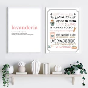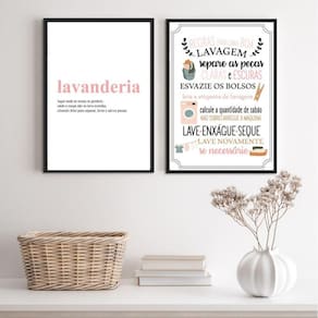 Kit 2 quadros lavanderia soft - rosa 33x24cm Moldura: madeira preta Informações do produto tire todas as suas dúvidas no descritivo abaixo: decoração para quarto, sala, cozinha, escritório, área gourmet e muito mais. Chega de paredes vazias medidas - cada peça tem 33x24cm a4 . Material do papel - papel fotográfico brilhante de altíssima resolução acabamento - todos os quadros são acompanhados de uma película de acetato para proteção da imagem. - os quadros são embalados de forma segura com plástico bolha com camada dupla de acordo com o tamanho dos quadros. Garantia - garantia de 3 meses. Meu quadro chegou. Como posso fixá-lo Você precisa apenas de um martelo e um prego, pois os quadros já vão acompanhados de penduradores. Esta é a forma mais indicada. Caso prefira, você pode utilizar uma fita dupla face neste caso, sugerimos de alta qualidade para evitar que descole e seu quadro caia . Como posso limpar meu quadro A limpeza é feita como um móvel comum da sua casa. Apenas um pano seco ou espanador são suficientes para tal