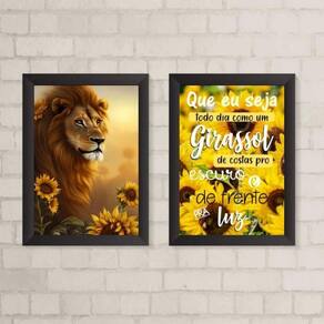O Kit 2 Quadros Leão Que Eu Seja Como O Girassol 24X18Cm é perfeito para decorar qualquer ambiente da sua casa, seja quarto, sala, cozinha, escritório, área gourmet e muito mais. Com moldura de madeira branca, esses quadros trazem um toque de elegância e sofisticação para sua decoração.