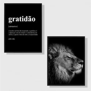 O Kit 2 Quadros Leão Gratidão Significado 24X18Cm - Com Vidro é perfeito para dar um toque especial à decoração do seu quarto, sala, cozinha, escritório, área gourmet e muito mais. Chega de paredes vazias, esses quadros vão trazer personalidade e estilo para o ambiente.