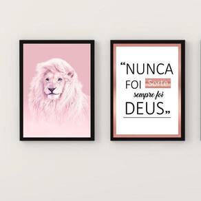 Kit 2 Quadros Leão Rosa Nunca Foi Sorte 24X18Cm