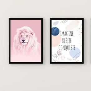 Com garantia de 3 meses, o Kit 2 Quadros Leão Rosa Imagine Deseje Conquiste 45x34cm é a escolha ideal para quem busca uma decoração diferenciada e cheia de personalidade. Adquira já o seu e deixe o seu ambiente ainda mais bonito e acolhedor.