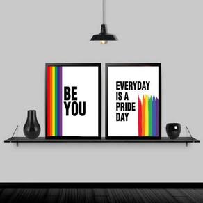 Kit 2 quadros lgbt everyday be you 33x24cm Moldura: madeira preta Informações do produto tire todas as suas dúvidas no descritivo abaixo: decoração para quarto, sala, cozinha, escritório, área gourmet e muito mais. Chega de paredes vazias medidas - cada peça tem 33x24cm a4 . Material do papel - papel fotográfico brilhante de altíssima resolução acabamento - todos os quadros são acompanhados de uma película de acetato para proteção da imagem. - os quadros são embalados de forma segura com plástico bolha com camada dupla de acordo com o tamanho dos quadros. Garantia - garantia de 3 meses. Meu quadro chegou. Como posso fixá-lo Você precisa apenas de um martelo e um prego, pois os quadros já vão acompanhados de penduradores. Esta é a forma mais indicada. Caso prefira, você pode utilizar uma fita dupla face neste caso, sugerimos de alta qualidade para evitar que descole e seu quadro caia . Como posso limpar meu quadro A limpeza é feita como um móvel comum da sua casa. Apenas um pano seco ou espanador são suficientes para tal