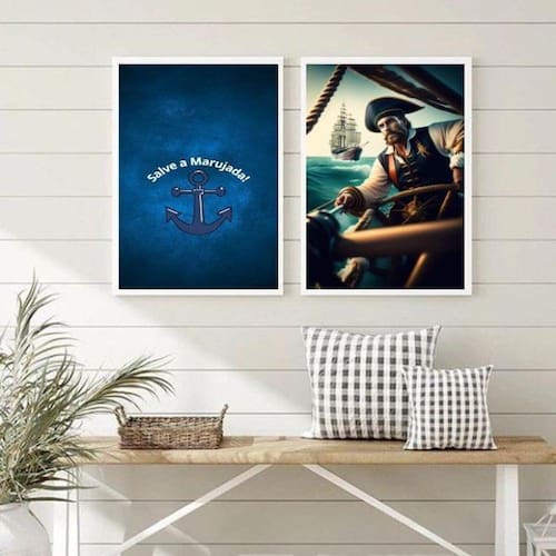 Kit 2 quadros marinheiros umbanda- salve a marujada 33x24cm - com vidro Moldura: madeira branca Informações do produto tire todas as suas dúvidas no descritivo abaixo: decoração para quarto, sala, cozinha, escritório, área gourmet e muito mais. Chega de paredes vazias medidas - cada peça tem 33x24cm a4 . Material do papel - papel fotográfico brilhante de altíssima resolução acabamento - todos os quadros são acompanhados de vidro para proteção da imagem. - moldura em madeira maciça na cor preta ou branca conforme produto escolhido e pendurador . - os quadros são embalados de forma segura com plástico bolha com camada dupla de acordo com o tamanho dos quadros. Garantia - garantia de 3 meses. Meu quadro chegou. Como posso fixá-lo Você precisa apenas de um martelo e um prego, pois os quadros já vão acompanhados de penduradores. Esta é a forma mais indicada. Como posso limpar meu quadro A limpeza é feita como um móvel comum da sua casa. Apenas um pano seco ou espanador são suficientes para tal Ean: 7893084708794