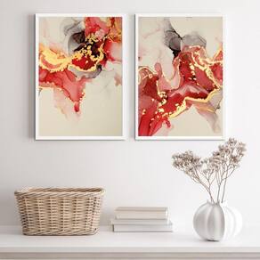 Garanta já o Kit 2 Quadros Abstratos Mármore Vermelho e Dourado 24x18cm e transforme a decoração da sua casa com muito estilo e sofisticação. Ean: 7892925366759