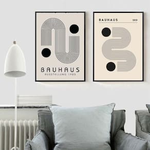 Kit 2 quadros minimalistas abstratos arte bauhaus 45x34cm - com vidro Moldura: madeira branca Informações do produto tire todas as suas dúvidas no descritivo abaixo: decoração para quarto, sala, cozinha, escritório, área gourmet e muito mais. Chega de paredes vazias medidas - cada peça tem 45x34cm a3 . Material do papel - papel fotográfico brilhante de altíssima resolução acabamento - todos os quadros são acompanhados de vidro para proteção da imagem. - moldura em madeira maciça na cor preta ou branca conforme produto escolhido e pendurador . - os quadros são embalados de forma segura com plástico bolha com camada dupla de acordo com o tamanho dos quadros. Garantia - garantia de 3 meses. Meu quadro chegou. Como posso fixá-lo Você precisa apenas de um martelo e um prego, pois os quadros já vão acompanhados de penduradores. Esta é a forma mais indicada. Como posso limpar meu quadro A limpeza é feita como um móvel comum da sua casa. Apenas um pano seco ou espanador são suficientes para tal
