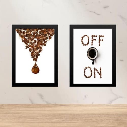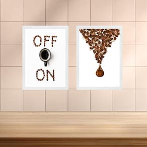 Kit 2 quadros minimalistas café on - off 45x34cm - com vidro Cor: moldura preta Informações do produto tire todas as suas dúvidas no descritivo abaixo: decoração para quarto, sala, cozinha, escritório, área gourmet e muito mais. Chega de paredes vazias medidas - cada peça tem 45x34cm a3 . Material do papel - papel fotográfico brilhante de altíssima resolução acabamento - todos os quadros são acompanhados de vidro para proteção da imagem. - moldura em madeira maciça na cor preta ou branca conforme produto escolhido e pendurador . - os quadros são embalados de forma segura com plástico bolha com camada dupla de acordo com o tamanho dos quadros. Garantia - garantia de 3 meses. Meu quadro chegou. Como posso fixá-lo Você precisa apenas de um martelo e um prego, pois os quadros já vão acompanhados de penduradores. Esta é a forma mais indicada. Como posso limpar meu quadro A limpeza é feita como um móvel comum da sua casa. Apenas um pano seco ou espanador são suficientes para tal
