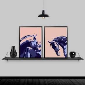 Kit 2 quadros modernos cavalos 45x34cm - com vidro Moldura: madeira preta Informações do produto tire todas as suas dúvidas no descritivo abaixo: decoração para quarto, sala, cozinha, escritório, área gourmet e muito mais. Chega de paredes vazias medidas - cada peça tem 45x34cm a3 . Material do papel - papel fotográfico brilhante de altíssima resolução acabamento - todos os quadros são acompanhados de vidro para proteção da imagem. - moldura em madeira maciça na cor preta e pendurador . - os quadros são embalados de forma segura com plástico bolha com camada dupla de acordo com o tamanho dos quadros. - de 3 meses. Meu quadro chegou. Como posso fixá-lo Você precisa apenas de um martelo e um prego, pois os quadros já vão acompanhados de penduradores. Esta é a forma mais indicada. Como posso limpar meu quadro A limpeza é feita como um móvel comum da sua casa. Apenas um pano seco ou espanador são suficientes para tal Ean: 7895584939890