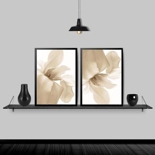Kit 2 Quadros Modernos Flores Brancas 45X34Cm Madeira Preta