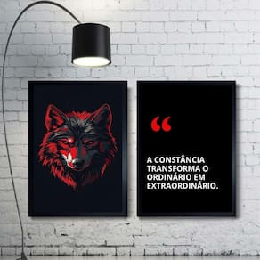 Kit 2 quadros motivacionais constância - lobo 24x18cm - com vidro Cor: moldura branca Informações do produto tire todas as suas dúvidas no descritivo abaixo: decoração para quarto, sala, cozinha, escritório, área gourmet e muito mais. Chega de paredes vazias medidas - cada peça tem 24x18cm a5 . Material do papel - papel fotográfico brilhante de altíssima resolução acabamento - todos os quadros são acompanhados de vidro para proteção da imagem. - moldura em madeira maciça na cor preta ou branca conforme produto escolhido e pendurador . - os quadros são embalados de forma segura com plástico bolha com camada dupla de acordo com o tamanho dos quadros. - de 3 meses. Meu quadro chegou. Como posso fixá-lo Você precisa apenas de um martelo e um prego, pois os quadros já vão acompanhados de penduradores. Esta é a forma mais indicada. Como posso limpar meu quadro A limpeza é feita como um móvel comum da sua casa. Apenas um pano seco ou espanador são suficientes para tal