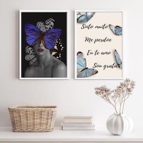 O Kit 2 Quadros Mulher Borboleta Azul Hooponopono 33X24Cm é perfeito para decorar qualquer ambiente da sua casa ou escritório. Com moldura de madeira branca, esses quadros trazem um toque especial e elegante para as paredes.