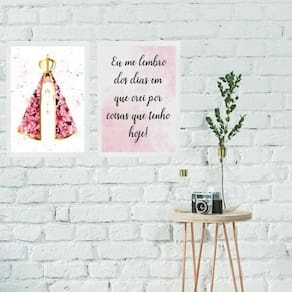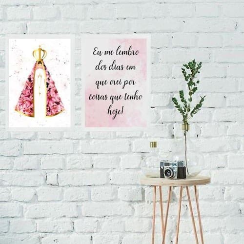Kit 2 quadros nossa senhora dias que orei 24x18cm Moldura: madeira branca Informações do produto tire todas as suas dúvidas no descritivo abaixo: decoração para quarto, sala, cozinha, escritório, área gourmet e muito mais. Chega de paredes vazias medidas - cada peça tem 24x18cm a5 . Material do papel - papel fotográfico brilhante de altíssima resolução acabamento - todos os quadros são acompanhados de uma película de acetato para proteção da imagem. - os quadros são embalados de forma segura com plástico bolha com camada dupla de acordo com o tamanho dos quadros. Garantia - garantia de 3 meses. Meu quadro chegou. Como posso fixá-lo Você precisa apenas de um martelo e um prego, pois os quadros já vão acompanhados de penduradores. Esta é a forma mais indicada. Caso prefira, você pode utilizar uma fita dupla face neste caso, sugerimos de alta qualidade para evitar que descole e seu quadro caia . Como posso limpar meu quadro A limpeza é feita como um móvel comum da sua casa. Apenas um pano seco ou espanador são suficientes para tal