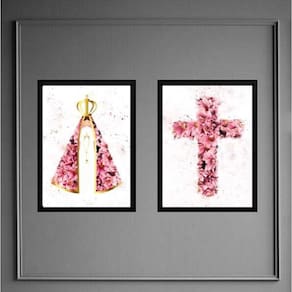 Kit 2 quadros nossa senhora e cruz flores 24x18cm Moldura: madeira preta Informações do produto tire todas as suas dúvidas no descritivo abaixo: decoração para quarto, sala, cozinha, escritório, área gourmet e muito mais. Chega de paredes vazias medidas - cada peça tem 24x18cm a5 . Material do papel - papel fotográfico brilhante de altíssima resolução acabamento - todos os quadros são acompanhados de uma película de acetato para proteção da imagem. - os quadros são embalados de forma segura com plástico bolha com camada dupla de acordo com o tamanho dos quadros. Garantia - garantia de 3 meses. Meu quadro chegou. Como posso fixá-lo Você precisa apenas de um martelo e um prego, pois os quadros já vão acompanhados de penduradores. Esta é a forma mais indicada. Caso prefira, você pode utilizar uma fita dupla face neste caso, sugerimos de alta qualidade para evitar que descole e seu quadro caia . Como posso limpar meu quadro A limpeza é feita como um móvel comum da sua casa. Apenas um pano seco ou espanador são suficientes para tal