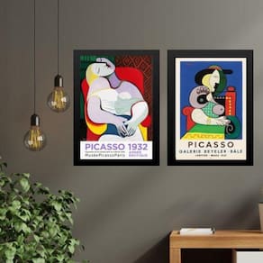 Kit 2 quadros obras pinturas picasso - mulheres 33x24cm Moldura: madeira preta Informações do produto tire todas as suas dúvidas no descritivo abaixo: decoração para quarto, sala, cozinha, escritório, área gourmet e muito mais. Chega de paredes vazias medidas - cada peça tem 33x24cm a4 . Material do papel - papel fotográfico brilhante de altíssima resolução acabamento - todos os quadros são acompanhados de uma película de acetato para proteção da imagem. - os quadros são embalados de forma segura com plástico bolha com camada dupla de acordo com o tamanho dos quadros. Garantia - garantia de 3 meses. Meu quadro chegou. Como posso fixá-lo Você precisa apenas de um martelo e um prego, pois os quadros já vão acompanhados de penduradores. Esta é a forma mais indicada. Caso prefira, você pode utilizar uma fita dupla face neste caso, sugerimos de alta qualidade para evitar que descole e seu quadro caia . Como posso limpar meu quadro A limpeza é feita como um móvel comum da sua casa. Apenas um pano seco ou espanador são suficientes para tal