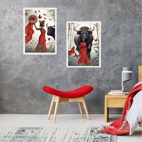 Kit 2 quadros orixá iansã- boi e borboletas 24x18cm - com vidro Moldura: madeira preta Informações do produto tire todas as suas dúvidas no descritivo abaixo: decoração para quarto, sala, cozinha, escritório, área gourmet e muito mais. Chega de paredes vazias medidas - cada peça tem 24x18cm a5 . Material do papel - papel fotográfico brilhante de altíssima resolução acabamento - todos os quadros são acompanhados de vidro para proteção da imagem. - moldura em madeira maciça na cor preta ou branca conforme produto escolhido e pendurador . - os quadros são embalados de forma segura com plástico bolha com camada dupla de acordo com o tamanho dos quadros. Garantia - garantia de 3 meses. Meu quadro chegou. Como posso fixá-lo Você precisa apenas de um martelo e um prego, pois os quadros já vão acompanhados de penduradores. Esta é a forma mais indicada. Como posso limpar meu quadro A limpeza é feita como um móvel comum da sua casa. Apenas um pano seco ou espanador são suficientes para tal