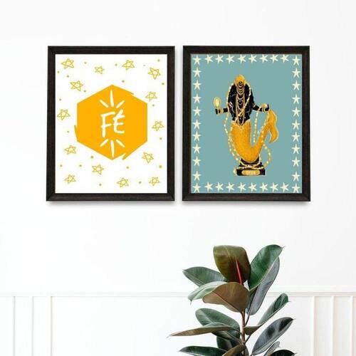 Kit 2 quadros oxum fé - estrelinhas 45x34cm Moldura: madeira branca Informações do produto tire todas as suas dúvidas no descritivo abaixo: decoração para quarto, sala, cozinha, escritório, área gourmet e muito mais. Chega de paredes vazias. Medidas - cada peça tem 45x34cm a3 . Material do papel - papel fotográfico brilhante de altíssima resolução acabamento - todos os quadros são acompanhados de uma película de acetato para proteção da imagem. - os quadros são embalados de forma segura com plástico bolha com camada dupla de acordo com o tamanho dos quadros. Garantia - garantia de 3 meses. Meu quadro chegou. Como posso fixá-lo Você precisa apenas de um martelo e um prego, pois os quadros já vão acompanhados de penduradores. Esta é a forma mais indicada. Caso prefira, você pode utilizar uma fita dupla face neste caso, sugerimos de alta qualidade para evitar que descole e seu quadro caia . Como posso limpar meu quadro A limpeza é feita como um móvel comum da sua casa. Apenas um pano seco ou espanador são suficientes para tal