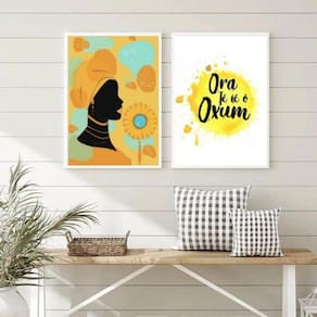 Kit 2 quadros oxum - saudação 45x34cm Moldura: madeira preta Informações do produto tire todas as suas dúvidas no descritivo abaixo: decoração para quarto, sala, cozinha, escritório, área gourmet e muito mais. Chega de paredes vazias. Medidas - cada peça tem 45x34cm a3 . Material do papel - papel fotográfico brilhante de altíssima resolução acabamento - todos os quadros são acompanhados de uma película de acetato para proteção da imagem. - os quadros são embalados de forma segura com plástico bolha com camada dupla de acordo com o tamanho dos quadros. Garantia - garantia de 3 meses. Meu quadro chegou. Como posso fixá-lo Você precisa apenas de um martelo e um prego, pois os quadros já vão acompanhados de penduradores. Esta é a forma mais indicada. Caso prefira, você pode utilizar uma fita dupla face neste caso, sugerimos de alta qualidade para evitar que descole e seu quadro caia . Como posso limpar meu quadro A limpeza é feita como um móvel comum da sua casa. Apenas um pano seco ou espanador são suficientes para tal