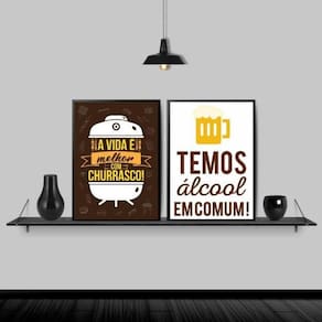 Kit 2 quadros para cantinho do churrasco 33x24cm - com vidro Moldura: madeira preta Informações do produto tire todas as suas dúvidas no descritivo abaixo: decoração para quarto, sala, cozinha, escritório, área gourmet e muito mais. Chega de paredes vazias medidas - cada peça tem 33x24cm a4 . Material do papel - papel fotográfico brilhante de altíssima resolução acabamento - todos os quadros são acompanhados de vidro para proteção da imagem. - moldura em madeira maciça na cor preta e pendurador . - os quadros são embalados de forma segura com plástico bolha com camada dupla de acordo com o tamanho dos quadros. - de 3 meses. Meu quadro chegou. Como posso fixá-lo Você precisa apenas de um martelo e um prego, pois os quadros já vão acompanhados de penduradores. Esta é a forma mais indicada. Como posso limpar meu quadro A limpeza é feita como um móvel comum da sua casa. Apenas um pano seco ou espanador são suficientes para tal