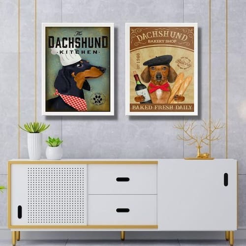 Kit 2 quadros para cozinha dachshund 33x24cm Cor: moldura branca Informações do produto tire todas as suas dúvidas no descritivo abaixo: decoração para quarto, sala, cozinha, escritório, área gourmet e muito mais. Chega de paredes vazias medidas - cada peça tem 33x24cm a4 . Material do papel - papel fotográfico brilhante de altíssima resolução acabamento - todos os quadros são acompanhados de uma película de acetato para proteção da imagem. - os quadros são embalados de forma segura com plástico bolha com camada dupla de acordo com o tamanho dos quadros. Garantia - garantia de 3 meses. Meu quadro chegou. Como posso fixá-lo Você precisa apenas de um martelo e um prego, pois os quadros já vão acompanhados de penduradores. Esta é a forma mais indicada. Caso prefira, você pode utilizar uma fita dupla face neste caso, sugerimos de alta qualidade para evitar que descole e seu quadro caia . Como posso limpar meu quadro A limpeza é feita como um móvel comum da sua casa. Apenas um pano seco ou espanador são suficientes para tal